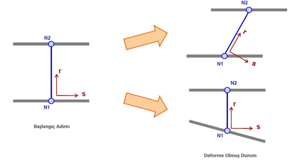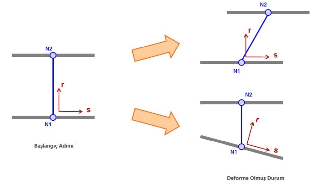 Bu eksen sisteminin analiz sırasında nasıl güncelleneceği *SECTION_BEAM kartındaki “SCOOR” seçeneği tarafından kontrol edilir.